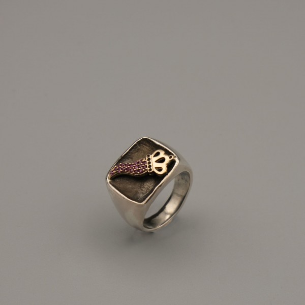 Anello cornetto con rubini